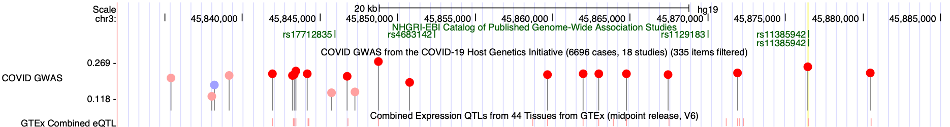 track type=bigLolly name="bigLolly Example Two: SNP data" description="A second bigLolly file" bigDataUrl=http://genome.ucsc.edu/goldenPath/help/examples/bigLollyExample2.bb lollyField=pValueLog visibility=full