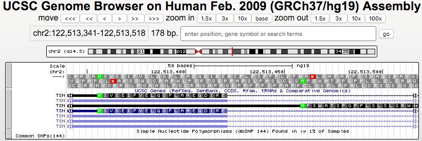 European descent. The UCSC Genes track was forced to skip the codon to indicate a full-length coding